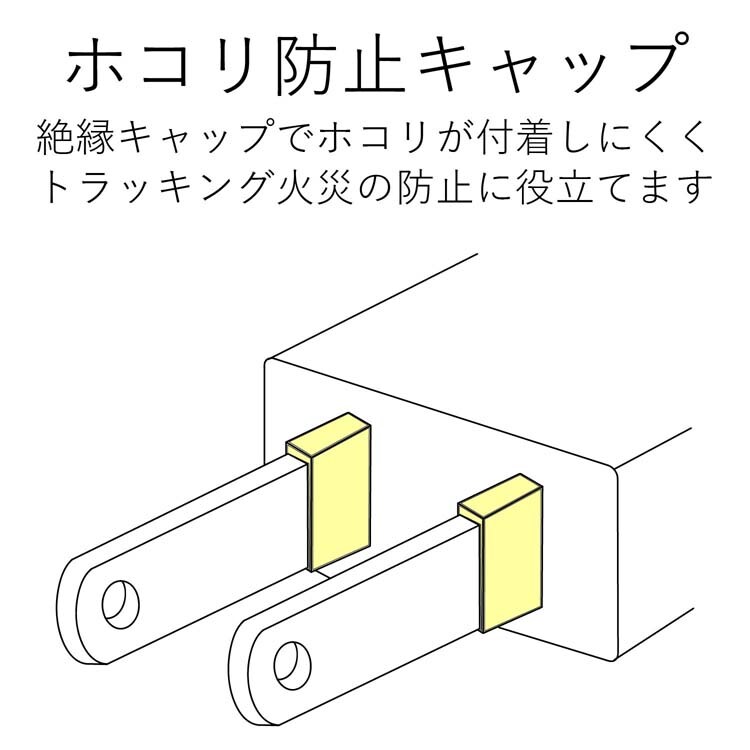 | ・本体差込口形状:2ピン ・本体差込口個数:6個口 ・プラグ仕様:2ピン、スイングプラグ ・コード長:2.5m ・定格:125V、15A、1500W |