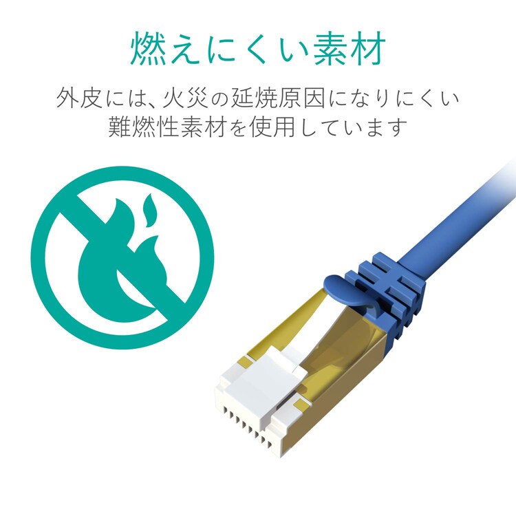 ●プロテクタとコネクタのダブル構造で、通常の使用環境ではツメが折れない!※10G BASE-Tに対応し、直径わずか4.3mmで狭い場所などでの配線に適したスリムタイプのLANケーブル。※1000回の屈曲検査に合格(メーカー検証)