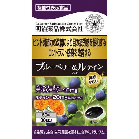 届出表示:本品にはビルベリー由来アントシアニン及びルテインが含まれます。 ビルベリー由来アントシアニンにはスマートフォンやパソコン等の使用により低下するピント調節力を改善することでスマートフォンやパソコン等を使用することによる目の疲労感の緩和に役立つ機能が、ルテインにはブルーライトなどの光の刺激から目を保護するとされる網膜の黄斑色素を補う機能や、コントラスト感度(かすみやぼやけの解消により物をくっきり見る力)を改善する機能が報告されています。