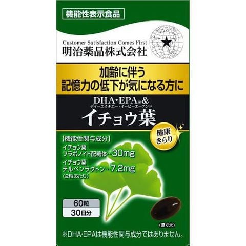 届出表示:本品にはイチョウ葉フラボノイド配糖体、イチョウ葉テルペンラクトンが含まれます。イチョウ葉フラボノイド配糖体、イチョウ葉テルペンラクトンには、加齢に伴う記憶力の低下が気になる方に適した機能(記憶の保持・検索・再生に役立つ)があることが報告されています。