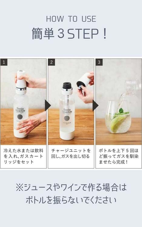 (3)水だけじゃなく、ジュースやお酒もそのままスパークリング可能