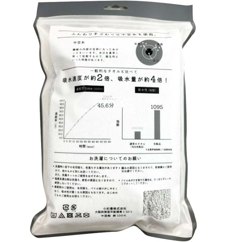 ●ふんわり手ざわりな中空糸を使用しています。中空糸とは繊維の内部が空洞になった糸のことをいいます。水分を素早く吸って拡散するので、衛生的といった特徴があります。