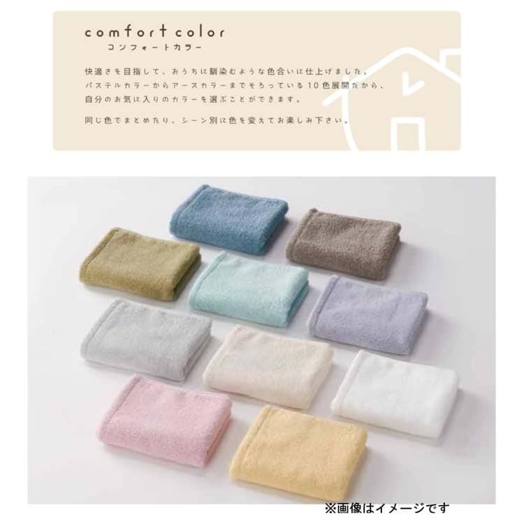 ●吸水性・速乾性に優れたミニバスタオル。ふんわりやわらかい手ざわりで、おうちに馴染むような色合い。