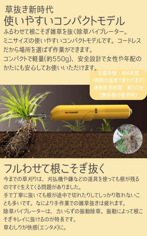 【ムサシ 充電式除草バイブレーターミニ WE-730の商品詳細】