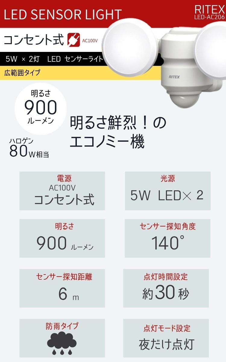 【ムサシ 5W*2灯 LEDセンサーライト LED-AC206の商品詳細】