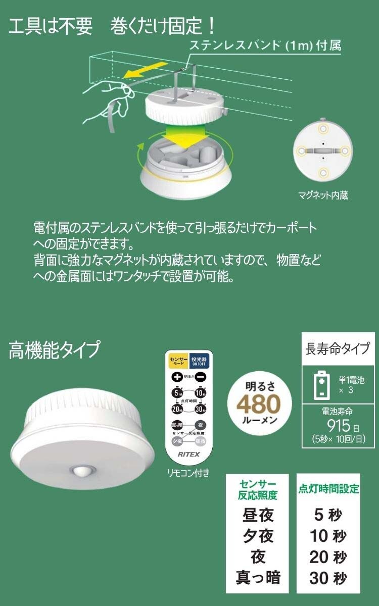 ●カーポート専用センサーライト 乾電池式。