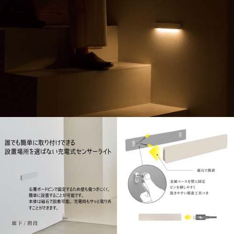 ●誰でも簡単に取り付けできる設置場所を選ばない充電式センサーライト