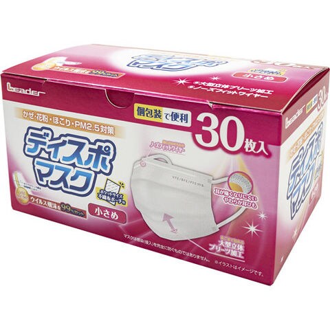 リーダー ディスポマスク 小さめ 個包装 (30枚入)