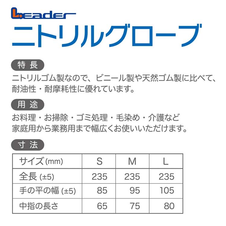 【リーダー ニトリルグローブ Sサイズの商品詳細】