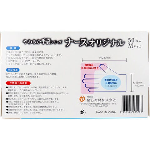 やわらか手袋 ナースオリジナル ビニール素材 Mサイズ (50枚入)