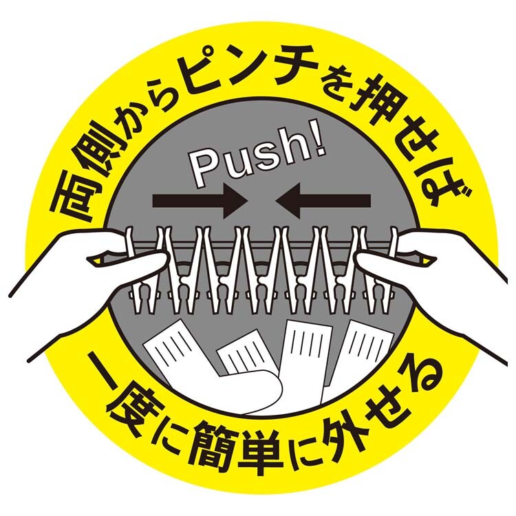 ●両側からピンチを押せば、一度に簡単に洗濯物が外せます。