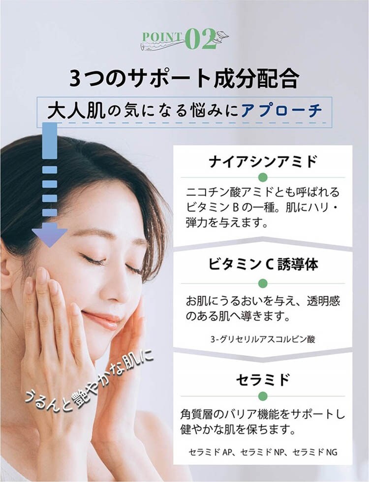 ●肌の土台(角層)を支え、厳選された美容保湿成分で肌本来の美しさを。