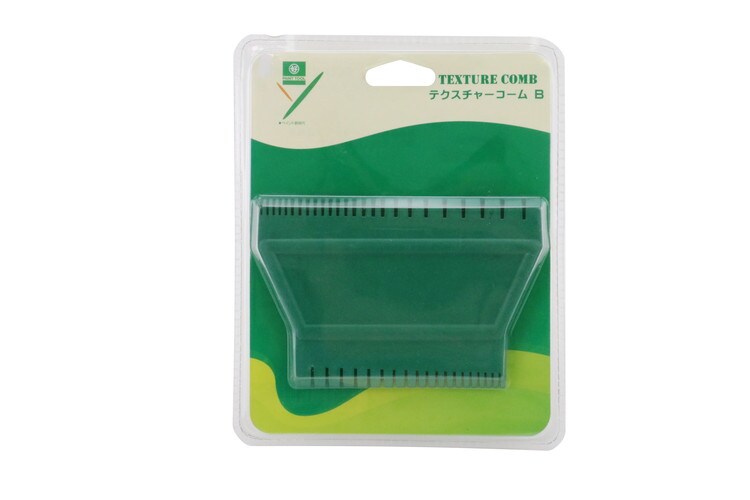 ・クシ目間隔が小から大へと段階的に変化するクシ目パターンを二種類持つ模様付け用コーム(クシ)です。