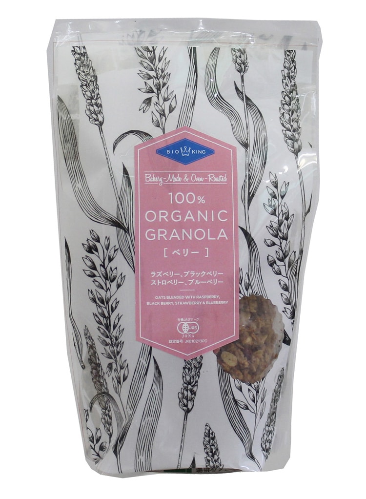| 有機オーツ麦フレーク、有機砂糖、有機ヒマワリ油、有機乾燥ココナッツ、有機スペルト小麦パフ、有機オーツ麦粉、有機乾燥果実(ストロベリー、ブラックペリー、ラズベリー、ブルーベリー) |