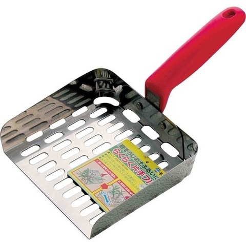 | ・用途:園芸用フルイ ・サイズ:幅152×全長250mm ・フルイ部:ステンレス鋼 ・首部:ステンレス鋼 ・柄:軟質塩ビ |
