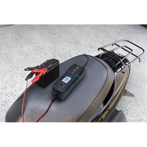 ●スイッチング電源の採用により、充電器の軽量・小型化を実現。出力電流(最大)3.5A(自動車モード) 0.8A(オートバイモード)