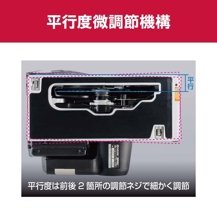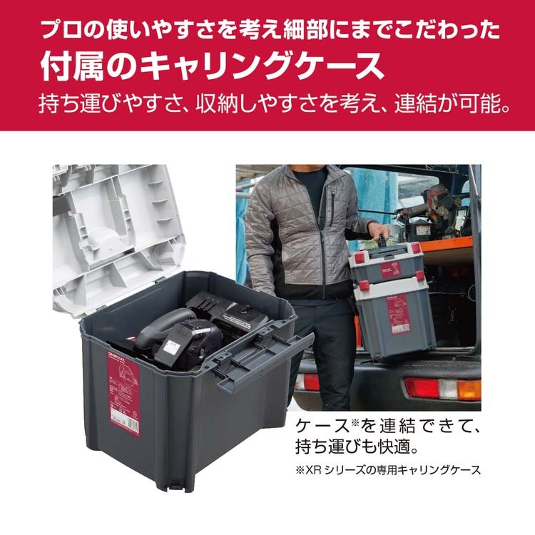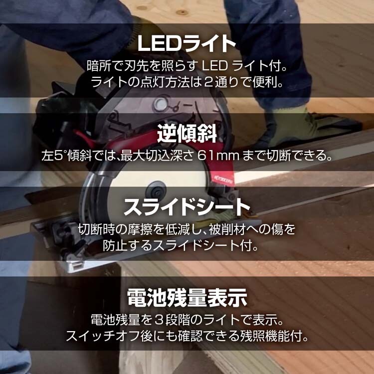 | 165mmレーザースリットチップソー×1・充電器(BC-1800L)×1・電池パック(B-1850LA)×2・キャリングケース×1・六角棒レンチ(本体取付)×1。 |