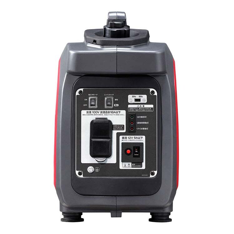 | ・定格出力:1.8kVA(交流)・12V(直流) ・連続運転可能時間:3.2時間(定格負荷)・7.4時間(1/4負荷省エネモード) ・燃料タンク容量:3.6L ・総排気量:113mL ・電圧調整方式:インバーター式 ・始動方式:リコイルスターター(手動) ・発電機形式:多極界磁回転型 ・品名コード:664800A ・材質:ハウジング:PP、燃料タンク:HDPE |