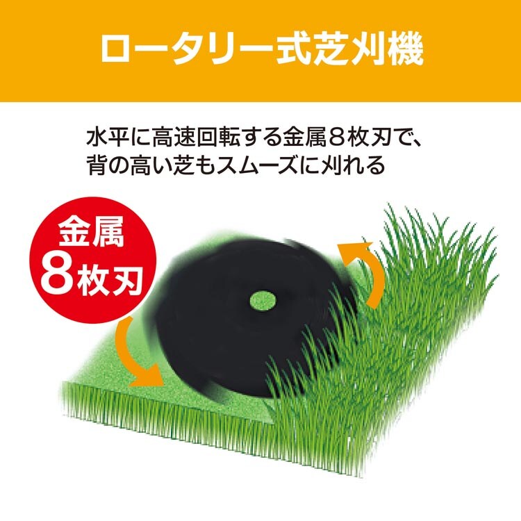 ●水平に高速回転するロータリー刃で芝をはらうようにカット。