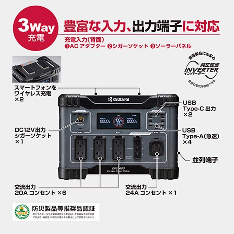 【京セラ(リョービ) ポータブル電源 DPS2400 2400W 669506Aの商品詳細】
