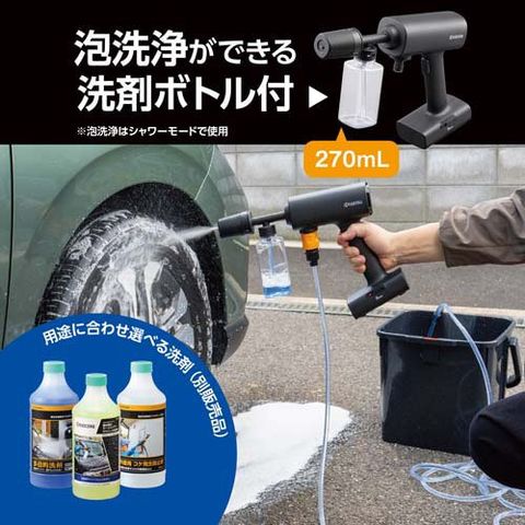 | 3in1ノズル×1 ペットボトルジョイント×1 洗剤ボトル(270ml)×1 自吸ホース6m(ホース固定用クリップ付)×1 USB充電ケーブル(Type-C0.5m)×1 |