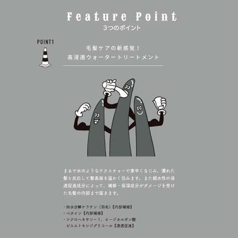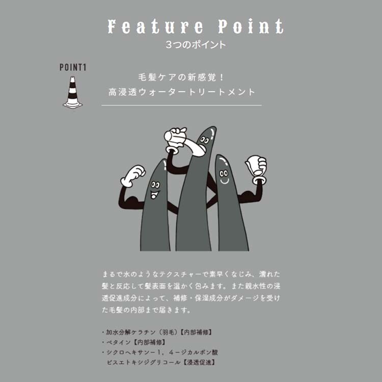 ●高浸透ウォータートリートメント:まるで水のようなテクスチャーで素早くなじみ、親水性の浸透促進成分※1 によって、補修※2・保湿成分がダメージを受けた毛髪の内部まで届きます。