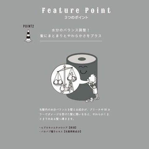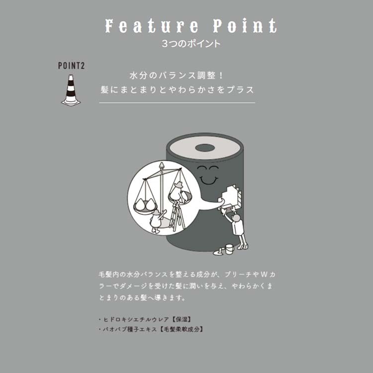 ●BALANCING WATER TREATMENT:3秒うるおいチャージ。ブリーチやWカラーなどを繰り返したハイダメージ毛に瞬時※ にやわらかさと潤いを与える水トリートメント。毛髪の水分バランスを整え、手触りのよい髪に導きます。