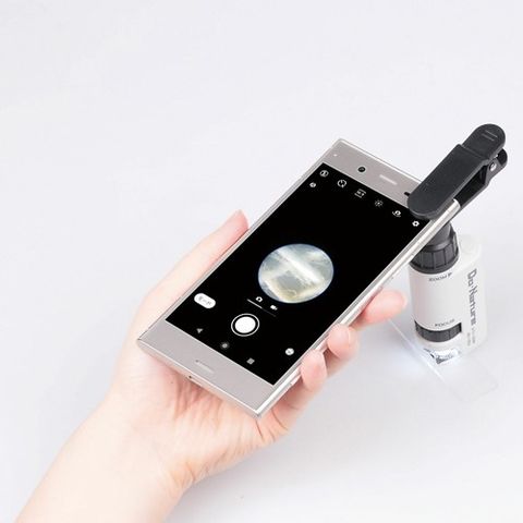 ●スマートフォンを取り付けて撮影可能な、ハンディ型顕微鏡。