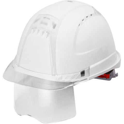 ●幅の広いシールドレンズ内臓で、交換できる透明ヒサシを採用し、帽体内の通気性をアップしています。