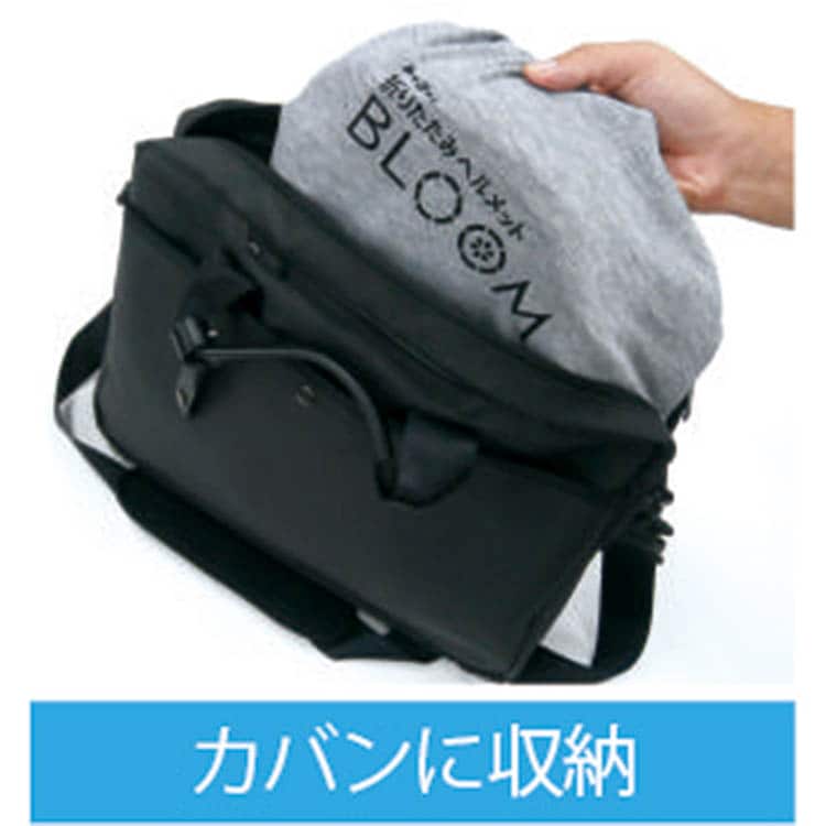 ●折りたたみヘルメットで、収納時の厚さが74mmなので、カバンや引き出しに収納できます。
