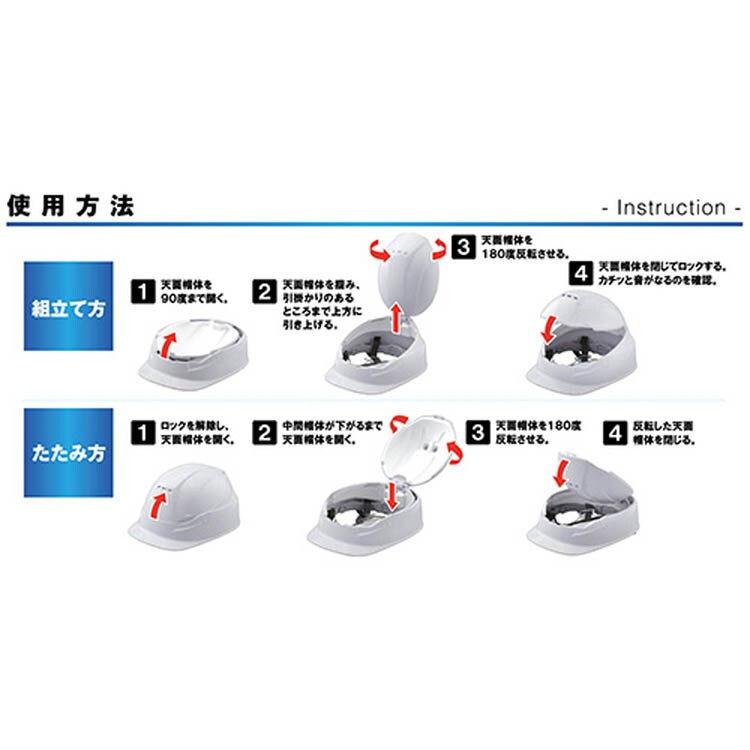 | サイズ・・・52~61cm 製品寸法(組み立て時)・・・高さ140*幅208*長さ277mm 製品寸法(折りたたみ時)・・・高さ74*幅208*長さ277mm 重量・・・約415g 規格・・・厚生労働省保護帽の規格「飛来・落下物用」、「墜落時保護用」国家検定合格品 |