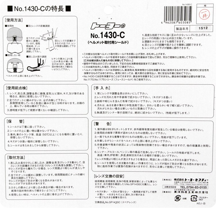 【トーヨー(TOYO) ヘルメット取付用シールド No.1430-Cの商品詳細】