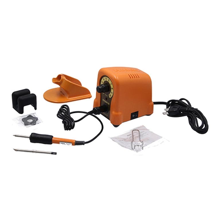 | 消費電力:AC100V・45W 設定温度範囲:室温~550度 出力(ステーション部):13V 外形サイズ:幅100*高さ120*奥行130mm 重量:(ステーション部)1kg、(こて部)30g 消費電力(こて部):40W(13V) 標準ペン先:B型(T21-B1)、K型(T21-K8) |