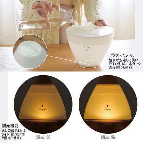 | サイズ(約):W227×D220×H330mm 重量(約):1.4kg 消費電力:22W 電源コード長さ(約):1.2m 水タンク容量(約):3.3L 加湿量(約):300ml/h 推奨床面積目安:木造4~6畳、プレハブ洋室6~8畳 材質:本体ABS樹脂、水タンクAS樹脂 |