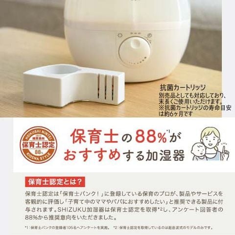 ●水槽内に抗菌カートリッジを搭載しており、加湿器内の雑菌繁殖を抑制します。