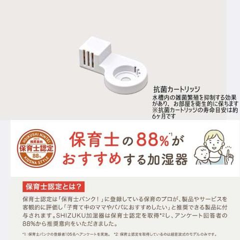 ●水槽内に抗菌カートリッジを搭載しており、加湿器内の雑菌繁殖を抑制します。