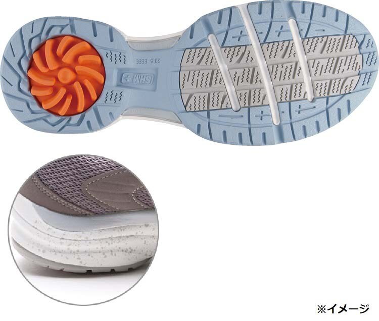●靴底のねじれを防ぐ軽量硬質EVAシャンクと、内外に高度差をつけてかかとの着地時の安定性を高めた高弾性EVAを組み合わせたミッドソールにより、快適な歩行をサポートします。