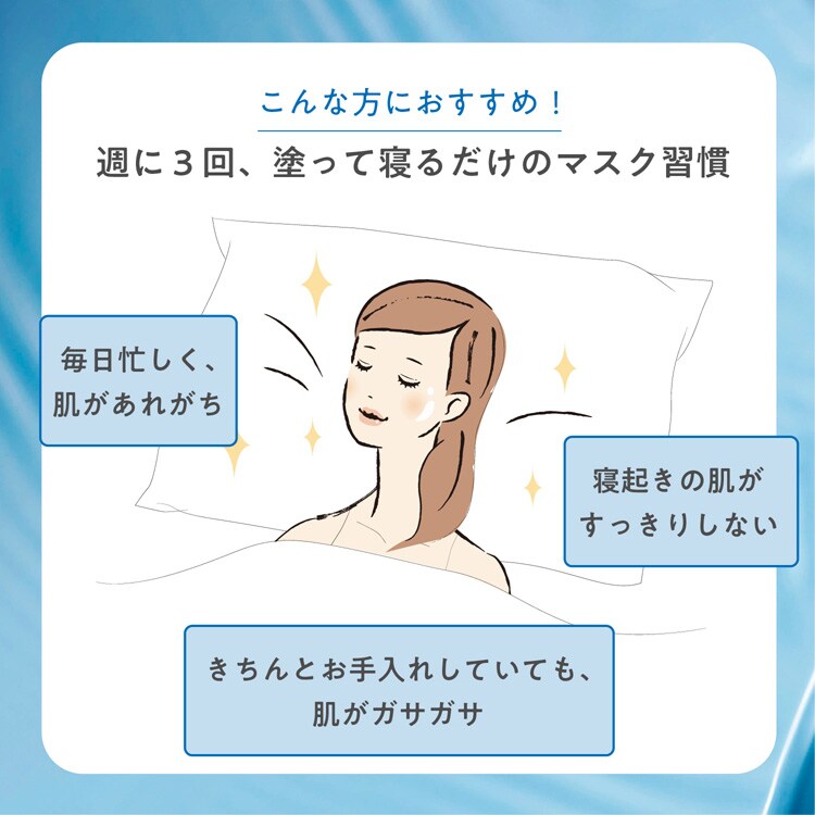 ●塗ってそのまま寝るだけ。長時間うるおいが続き、翌朝すっきりとした印象に導くスリーピングマスク。