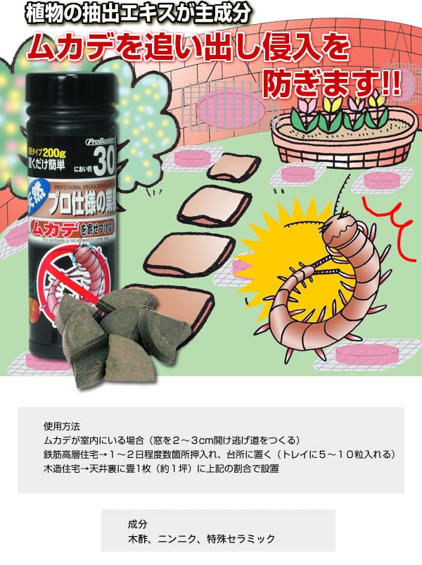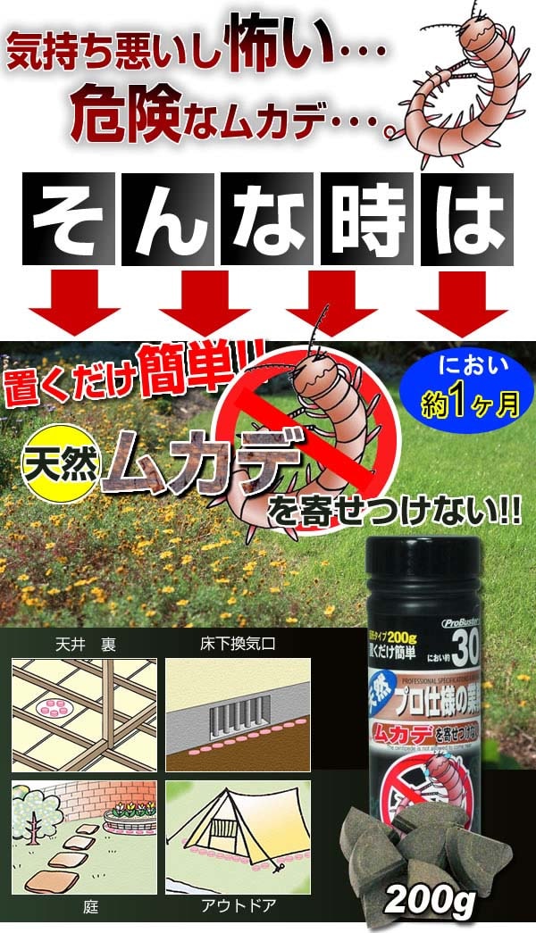 ●天然植物の抽出エキスを主成分とし、ムカデが嫌がる特殊なニオイで寄つけません!!