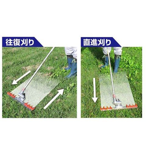●T型バリカン構造により掃除機のように往復刈りや直進刈りが出来、作業効率はもちろん、作業者の疲労軽減につながります。