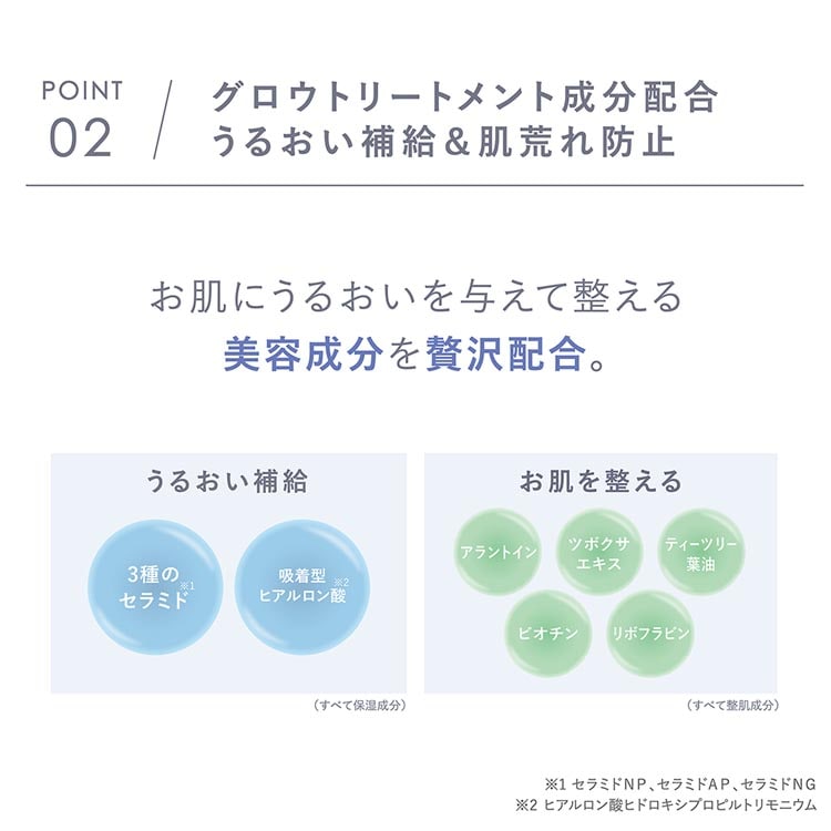 ・化粧水のあと、手のひらに適量(2~3プッシュ)をとり、お顔全体にやさしくなじませてください。