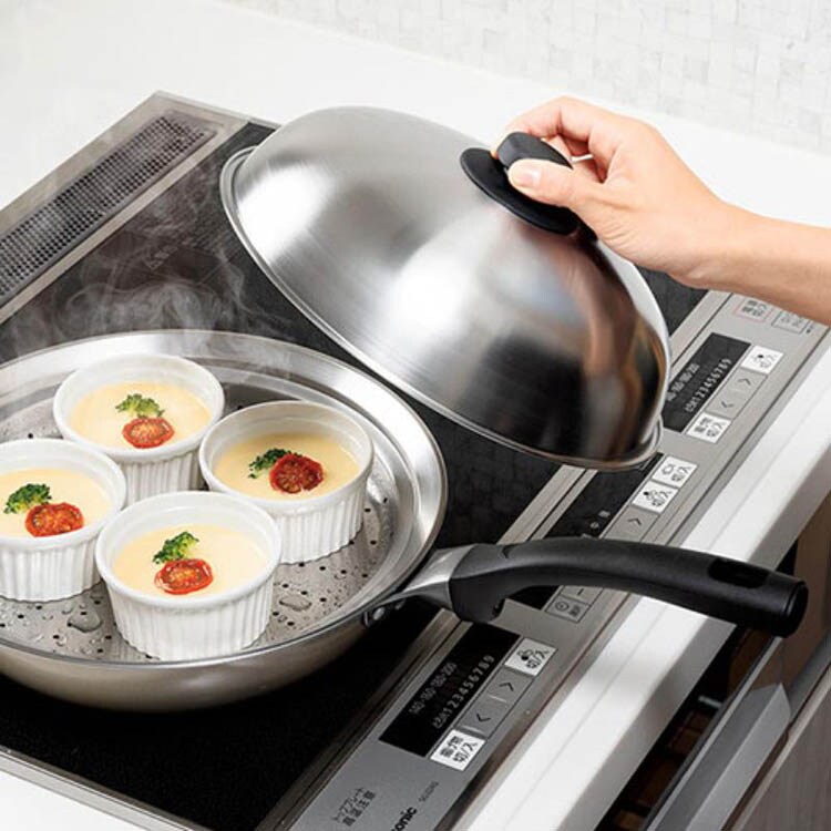 ●お持ちのフライパンで手軽に蒸し物ができるスチームプレートです。