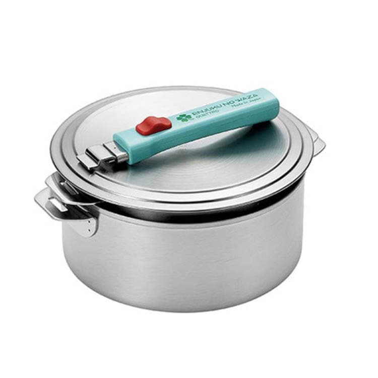 | 素材:本体・蓋/ステンレス鋼、ハンドル・ツマミ/66ナイロン サイズ:鍋18cm/(ハンドル・含む)23.5×18.5×鍋深さ8.3cm(容量:2.1L)、鍋20cm/(ハンドル・含む)25.5×20.3×鍋深さ8.8cm(容量:2.6L)、着脱ハンドル/17.5×3.2×2.7cm、兼用蓋18~20cm用/φ21.6×H3cm 製品総重量:1.31kg(鍋18cm:470g、鍋20cm:540g、着脱ハンドル:130g、兼用蓋18~20cm用:170g) IH200V電磁調理器対応 鍋本体のみ食器洗浄器対応 原産国:日本 管理:日本 |