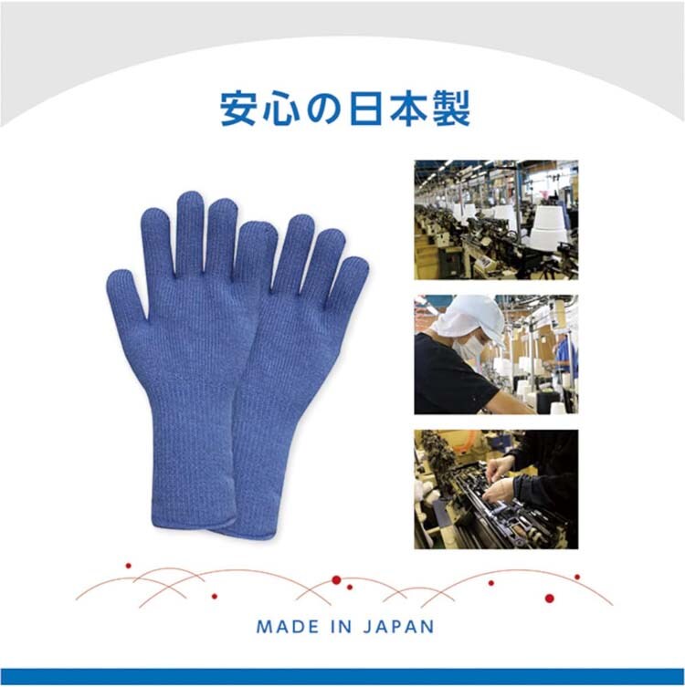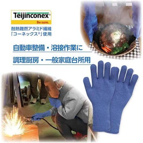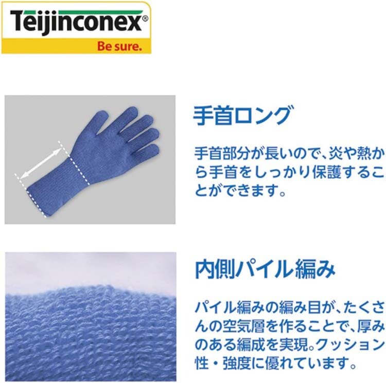 福徳産業 耐熱手袋 手首ロング ブルー アラミド繊維 軍手 #246-L (1双)