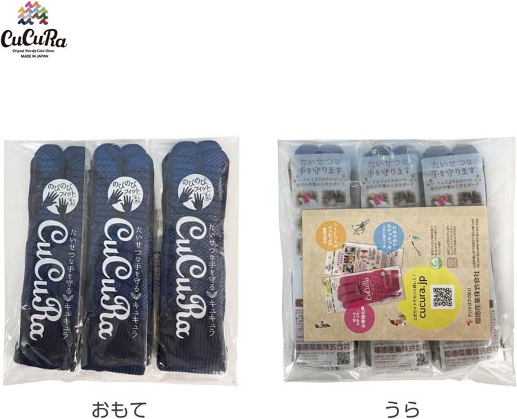 福徳産業 CuCuRa(キュキュラ) すべり止め 軍手 ネイビー #929SL-NV-3P (3双入)