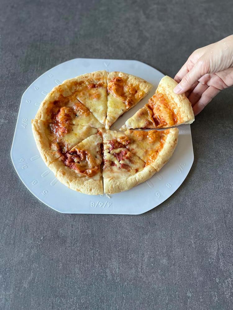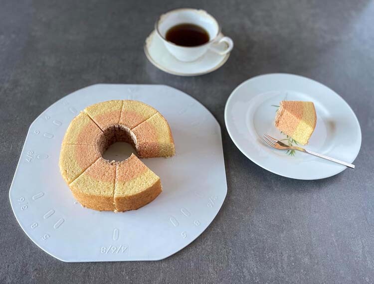 ●ピザやホールケーキをメモリで等分にカットできるまな板。