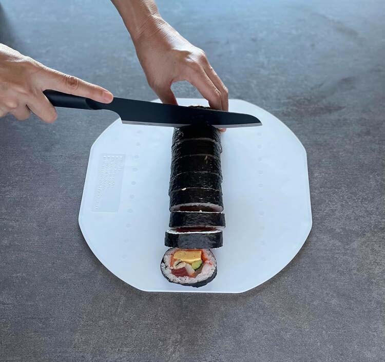 ●裏面は太巻きやロールケーキなど、長さがある食材用メモリ入り。