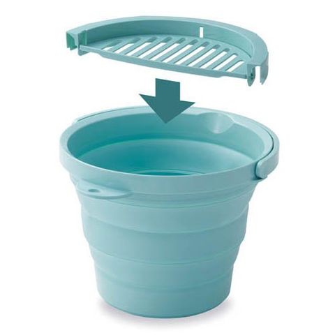 【折りたたみバケツ ちょい置きトレー付き ミントグリーン I-640の商品詳細】