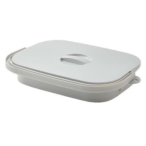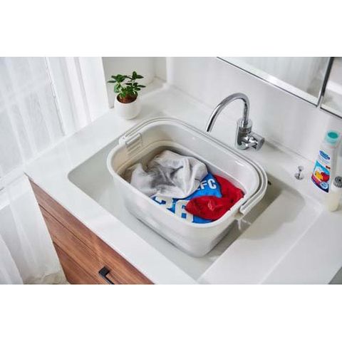 | サイズ:折りたたみ時/約47×33.5×8.5cm、組み立て時/約47×33.5×21cm、底部内寸/約32×21.5cm 容量:約16L 材質:枠・底・ハンドル・フタ・洗濯板/ポリプロピレン、本体/熱可塑性エラストマー |
