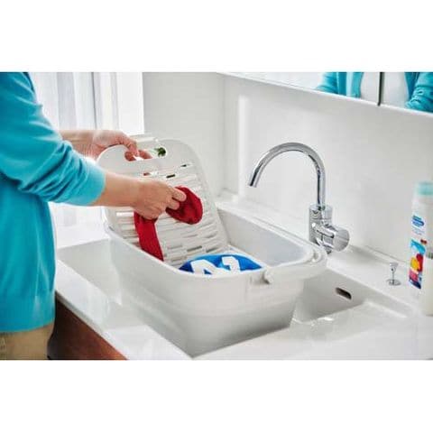 ●コンパクトに折りたたみできる!やわらか素材のつけおき洗いバケツ。